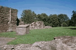 Of the Church itself there remains above ground only portions of the walls of the nave and north transept. Enough of the Chapter-House is left to show how endowed it was in ornament and proportions. What remains of Balmerino Abbey is kept now kept in good order and condition. Although Daniel Defoe, who visited it in 1727, saw 'nothing worthy of observation, the very ruins being almost eaten up by time,' it is well deserving this reverent care, if only for the ancient trees that are gathered around it. Chieftains among these are a magnificent old Spanish chestnut and a walnut of like or superior age. Another reason to visit Balmerino is the beautiful views of the Firth of Tay, the Carse of Gowrie, and the Sidlaw range of hills, with glimpses of the more remote Grampians, including Ben Voirlech on Loch Earn - a distance of about fifty miles in a straight line.