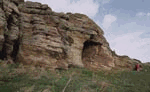 Midway between Kilrenny and Crail on the Fife Coastal Walk the red sandstone was cut out by waves in post-glacial times when the lower raised beach was being formed. Monks and pilgrims en route to St Andrews carved crosses in the caves and today local children still try to throw stones through the hole in the southwesterly cliff in an attempt to make a wish come true. The farm of Caiplie stands on the upper beach level between the coast and the A 917 road.