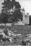 Grandtully Castle lies, quite easily seen from the road, to the west, in a fine wooded estate, a tall and shapely tower-house of the later s 6th century, but with a much older nucleus and later additions. It is a seat of the Steuart-Fothringham family, the Stewarts having been here since the late 4th century, descending from Alexander 4th High Steward of Scotland. In 1626 Sir William Stewart, Sheriff of Perth, made various alterations, especially to the picturesque turreted roof-line. Occupying a strategic position, Grandtully was much in demand as a headquarters for commanders, Montrose, General Mackay, Argyll, Mar (of the '15) and Prince Charles Edward all using it. An officer of Mackay's is said to have been shot dead in one of the angle-turrets, the blood allegedly permanently staining the floor. More recently, the famous Admiral Earl Beatty was tenant here; and another shooting-tenant, the Maharajah Duleep Singh, distinguished himself one August Twelfth by personally shooting no fewer than 220 brace of grouse in one day.